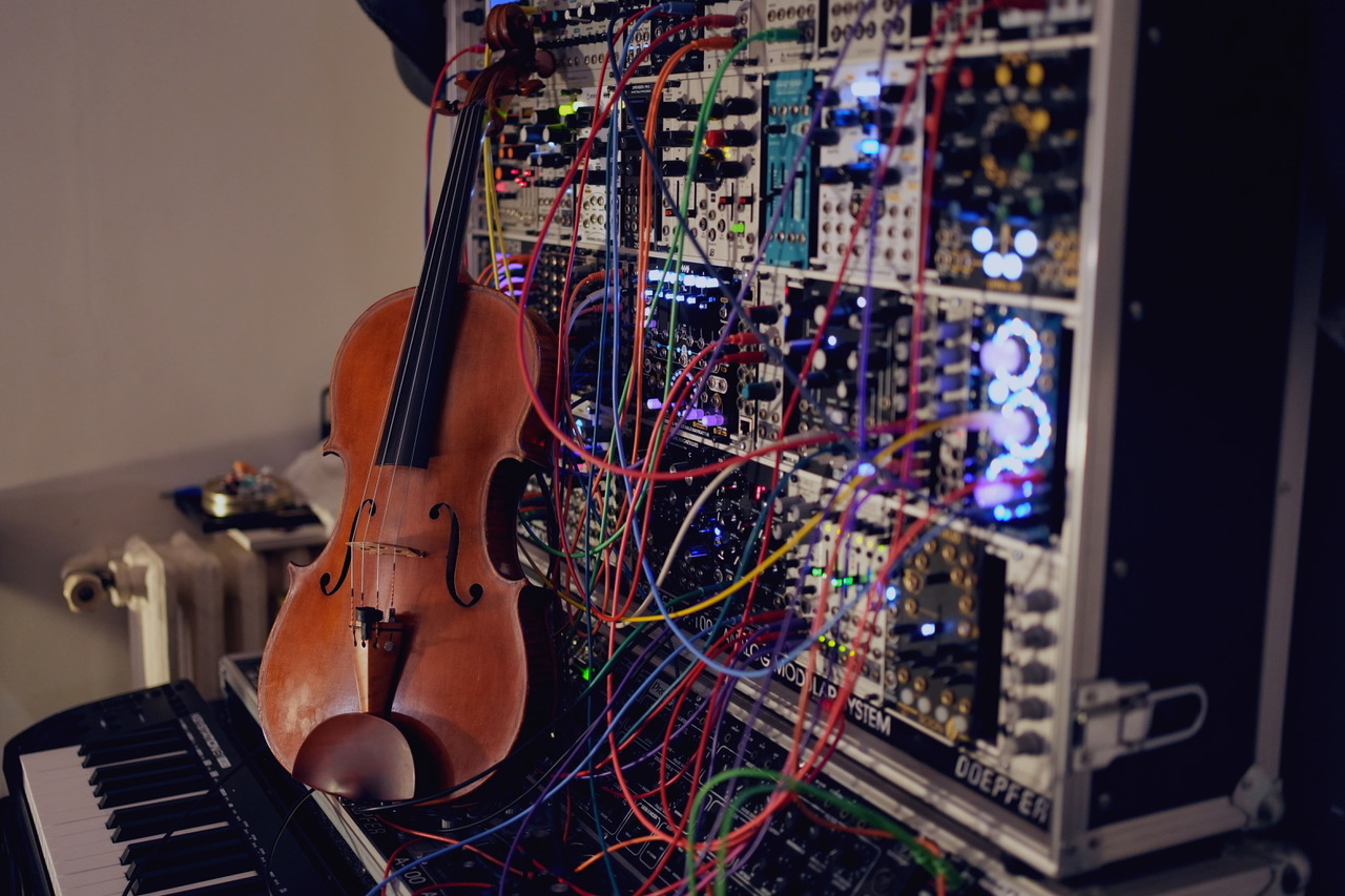 Irma’s texts and sounds from her viola are transformed live using Bruno’s modular system* to create new sonic landscapes. The viola and the spoken voice undergo distortion, alienation, and multifaceted processing until the boundaries of music dissolve for the listener, creating the feeling of being oneself part of the instrument.